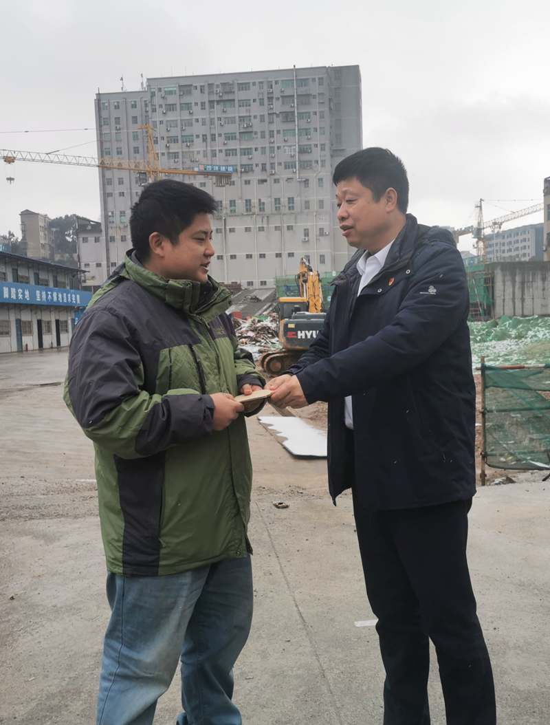 公司黨委副書記、總經(jīng)理江中同志慰問錦園路項目一線困難群眾,并向堅守在項目建設(shè)一線的工人們提前送上新春慰問,致以衷心的感謝和美好的祝愿,感謝大家為項目建設(shè)付出的巨大努力。江中強調(diào),項目負責人要做好各項服務(wù)保障工作,確保大家過一個歡樂祥和的春節(jié)。