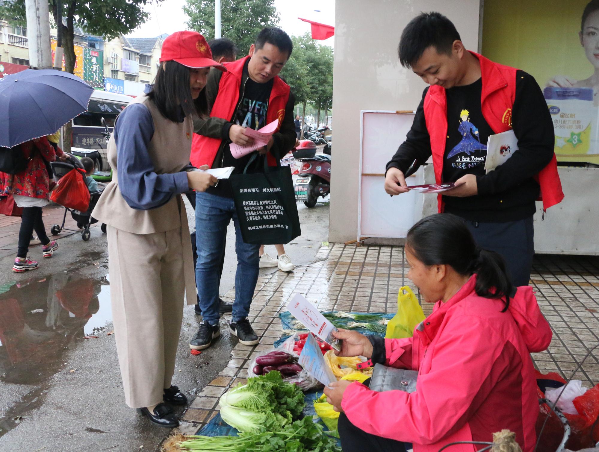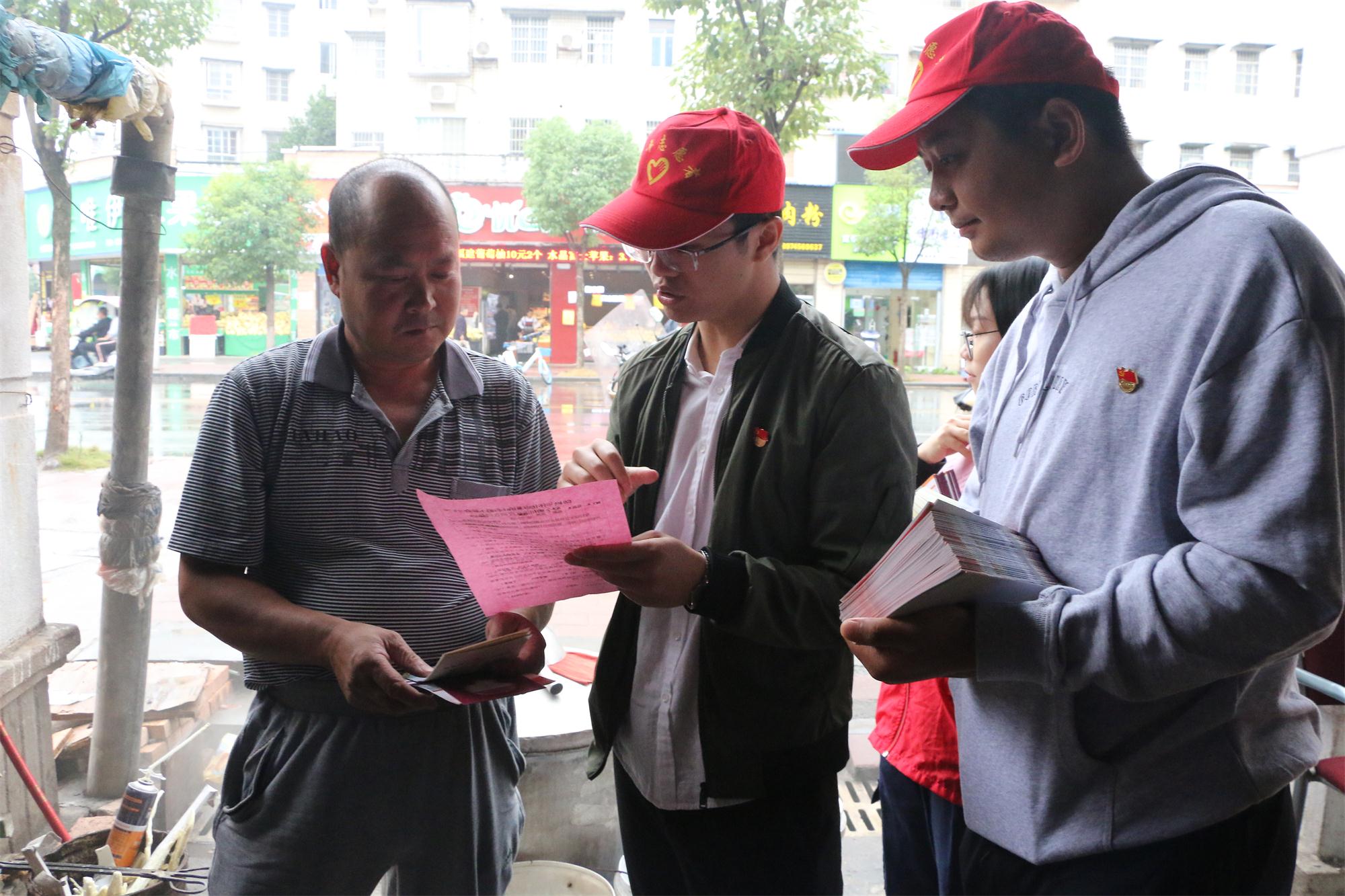 上午九點,雖漫天細雨,志愿者的熱情卻不減。活動負責人跟大家交代好注意事項后,志愿者們分隊前往社區(qū)挨家挨戶發(fā)放綜治民意調查、“三城同創(chuàng)”、掃黑除惡、禁毒等各類宣傳手冊,耐心給群眾講解宣傳冊內容,讓市民了解并積極參與幸福社區(qū)的創(chuàng)建工作。