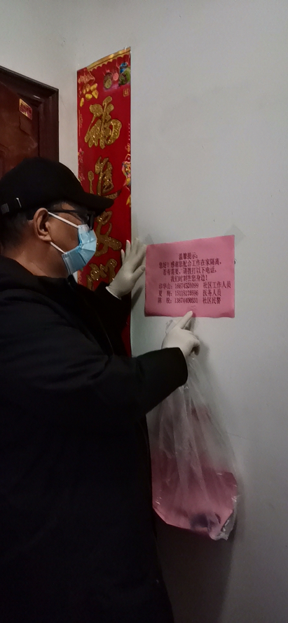突擊隊員前往社區(qū)入戶張貼疫情防控信息