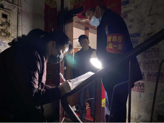 突擊隊(duì)員利用晚上排查白天未在家的住戶情況