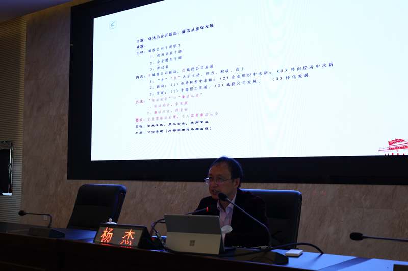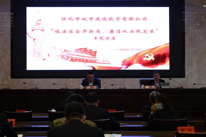 為推動公司“清廉國企”建設(shè),加強(qiáng)依法治企能力,強(qiáng)化全員廉潔從業(yè)意識,2022年4月29日上午,懷化市城市建設(shè)投資有限公司舉辦了“依法治企開新局,廉潔從業(yè)促發(fā)展”專題教育講座,公司黨委委員、紀(jì)檢書記、監(jiān)察專員劉文主持講座。