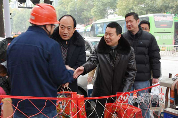 1月29日下午,懷化市文明辦、懷化市直機(jī)關(guān)工委領(lǐng)導(dǎo)帶著懷化市志愿者協(xié)會(huì)負(fù)責(zé)人一行來到國網(wǎng)懷化供電公司,慰問在抗冰保電戰(zhàn)斗中沖鋒在前的共產(chǎn)黨員服務(wù)隊(duì)。得知國網(wǎng)懷化供電公司配電運(yùn)檢室共產(chǎn)黨員服務(wù)隊(duì)此時(shí)正在懷西路搶修線路,一行人馬上趕到了懷西路施工現(xiàn)場。