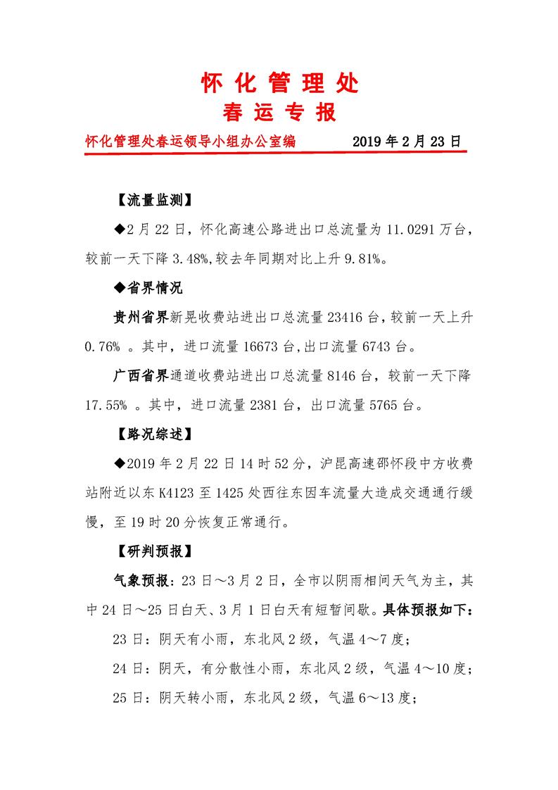2019年懷化市高速公路春運(yùn)專報(bào)(第32期)