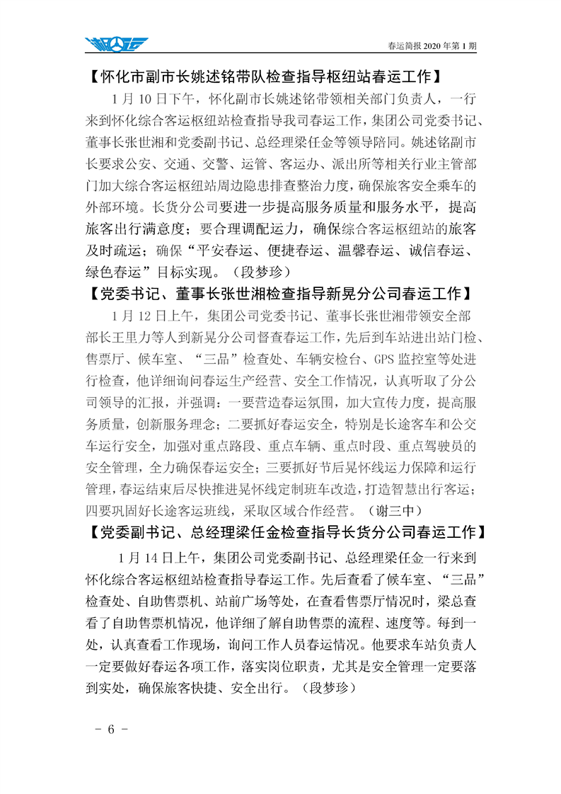 懷運(yùn)集團(tuán)春運(yùn)簡(jiǎn)報(bào) 2020 年第 1 期
