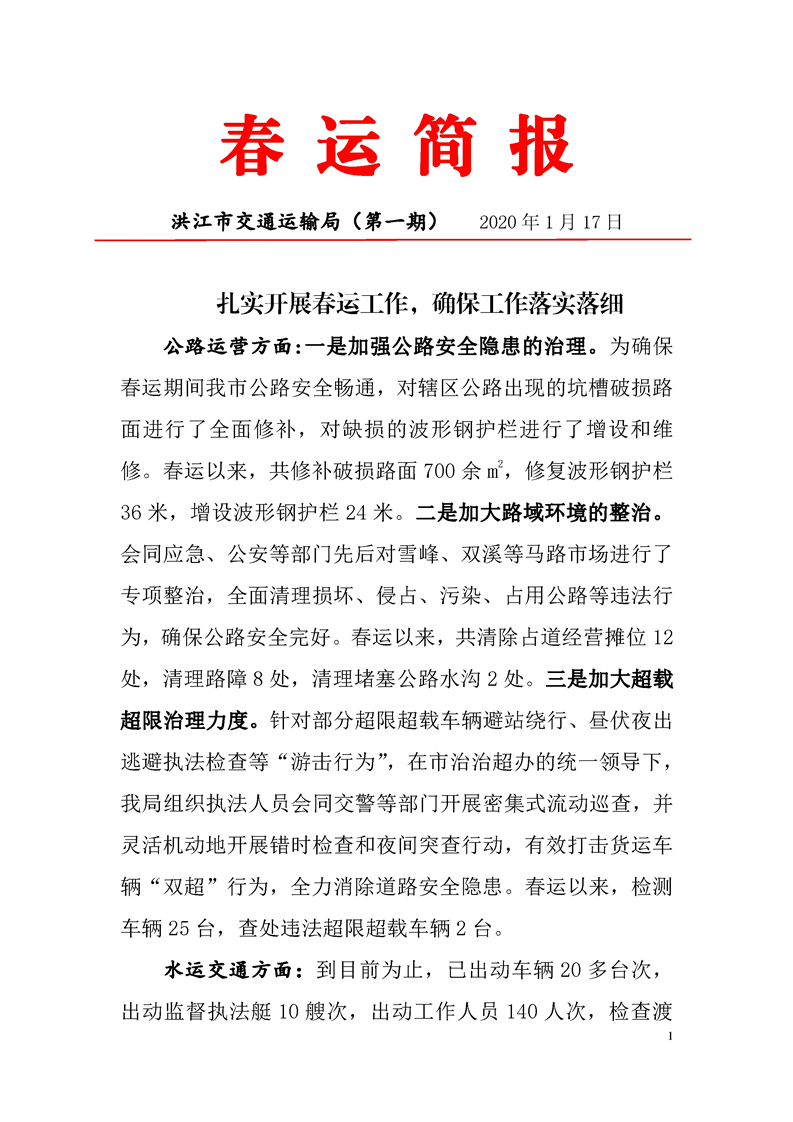 洪江市交通運(yùn)輸局春運(yùn)簡(jiǎn)報(bào) 第一期