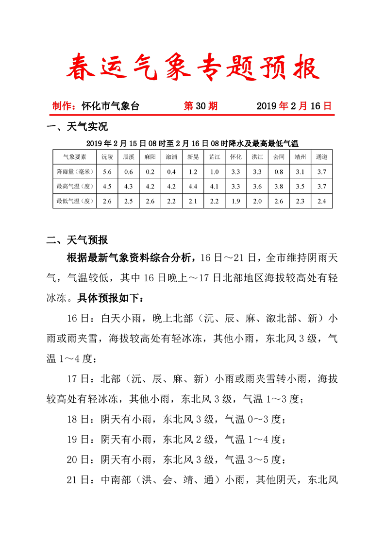 春運(yùn)氣象專題預(yù)報(bào)(第30期)