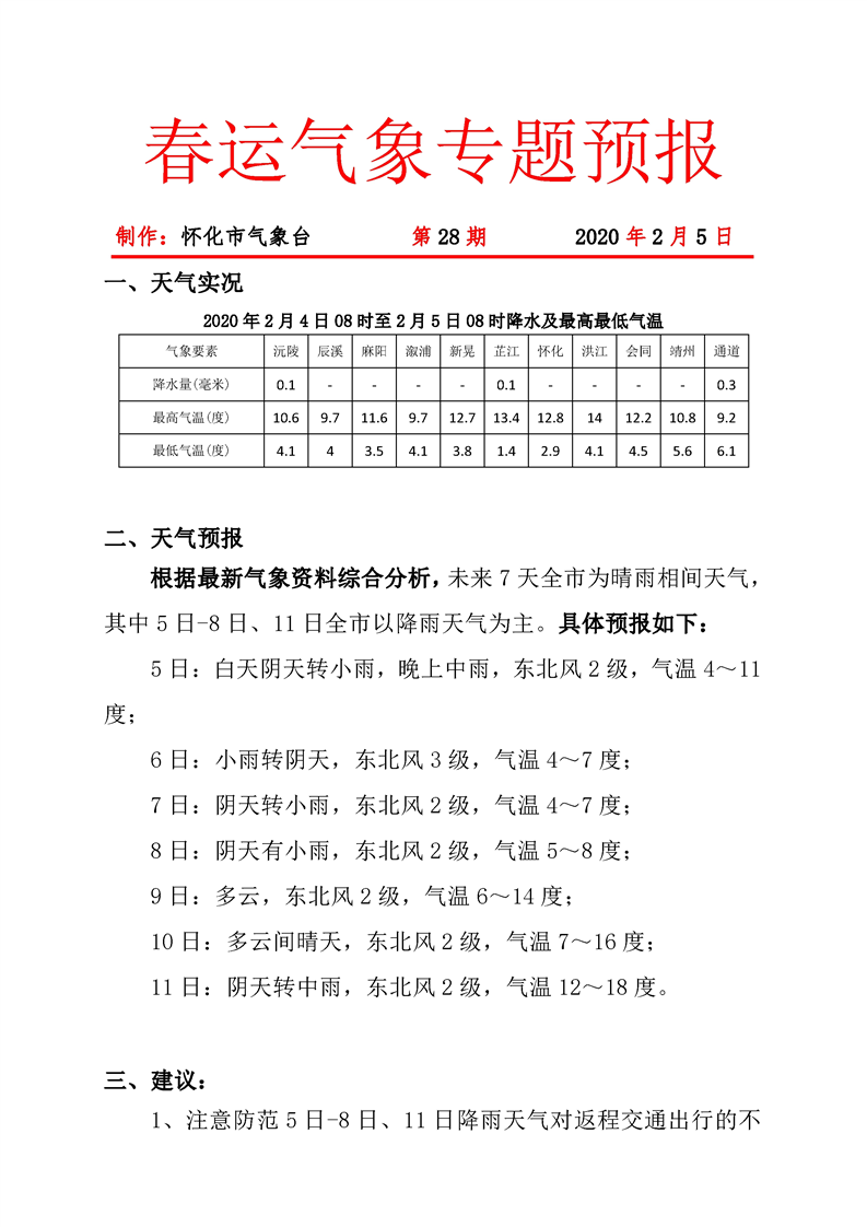 春運(yùn)氣象專題預(yù)報(bào) 第28期