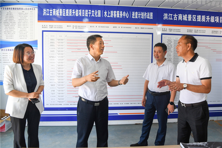 在洪江古商城,許忠建現(xiàn)場察看屈子江閣、水上游客服務(wù)中心、水棲龍門酒店、青山如是民宿等景區(qū)提質(zhì)改造項目進展情況,詳細了解古城保護開發(fā)和業(yè)態(tài)運營等情況。他指出,要堅持旅游業(yè)態(tài)與古城風貌相協(xié)調(diào),生動再現(xiàn)古城歷史風貌。要優(yōu)化旅游線路設(shè)計,讓旅客能更好感受到洪江古商城的歷史文化魅力。