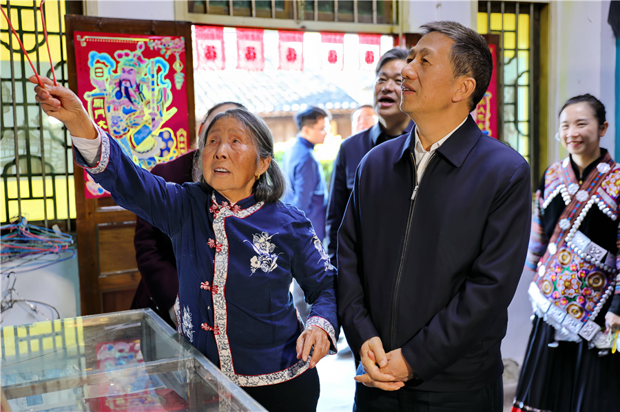 在會同高椅古村,許忠建詳細了解古村落保護利用、非遺保護傳承等工作情況。他指出,高椅古村作為保存完整的明清古村落集群,擁有獨特的建筑格局、深厚的文化底蘊和豐富的非遺資源。要始終堅持保護第一、傳承優(yōu)先,深挖古村的歷史文化內涵,扎實做好古村落和歷史文化遺產保護利用,讓古老村落煥發(fā)新活力、綻放新光彩。