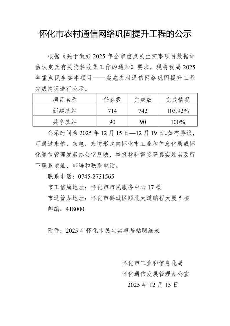 懷化市農(nóng)村通信網(wǎng)絡(luò)鞏固提升工程的公示
