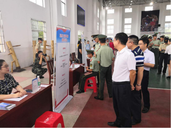 2019年8月29日,懷化市退役軍人事務(wù)局、懷化市人力資源和社會(huì)保障局、懷化軍分區(qū)政治工作處聯(lián)合舉辦“送政策、送服務(wù)、送就業(yè)職業(yè)崗位”進(jìn)軍營(yíng)專場(chǎng)招聘會(huì)。
