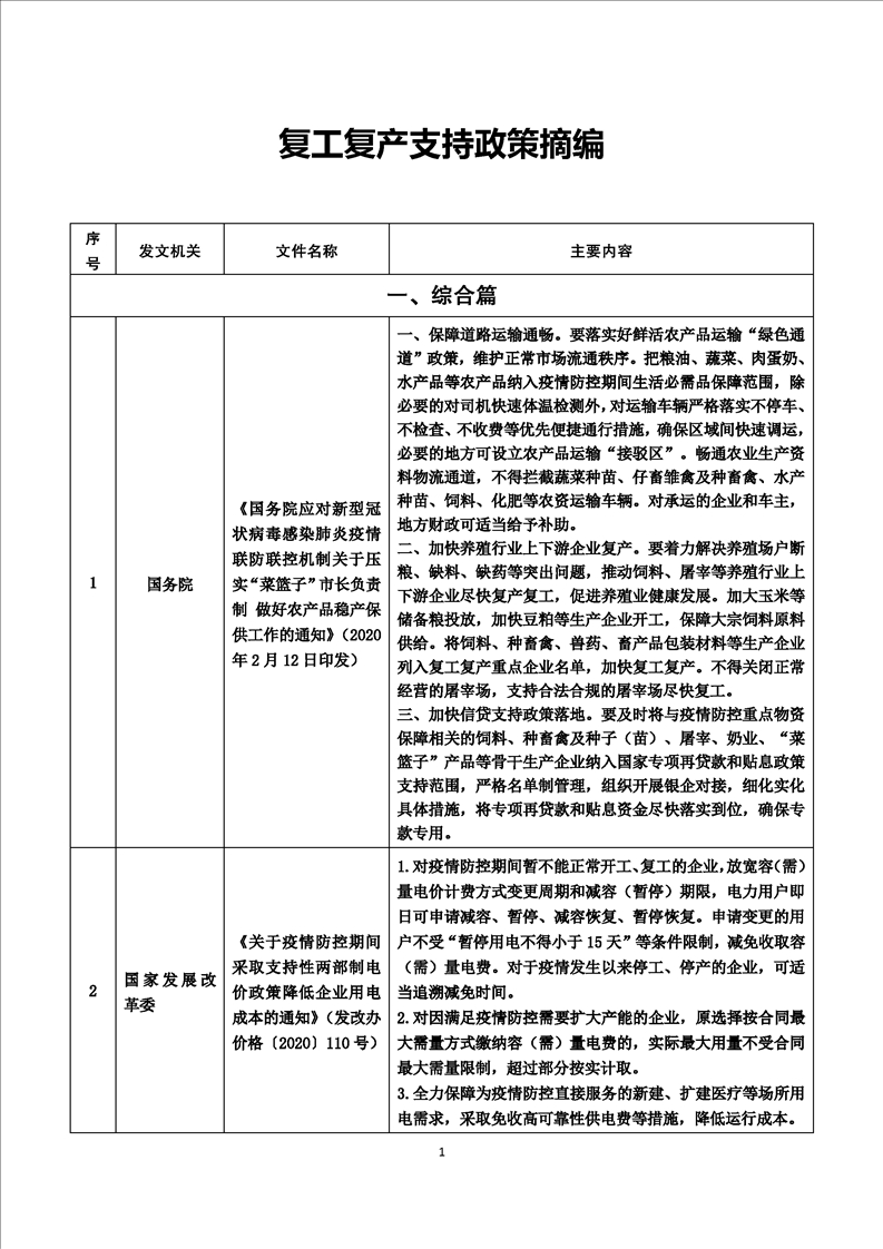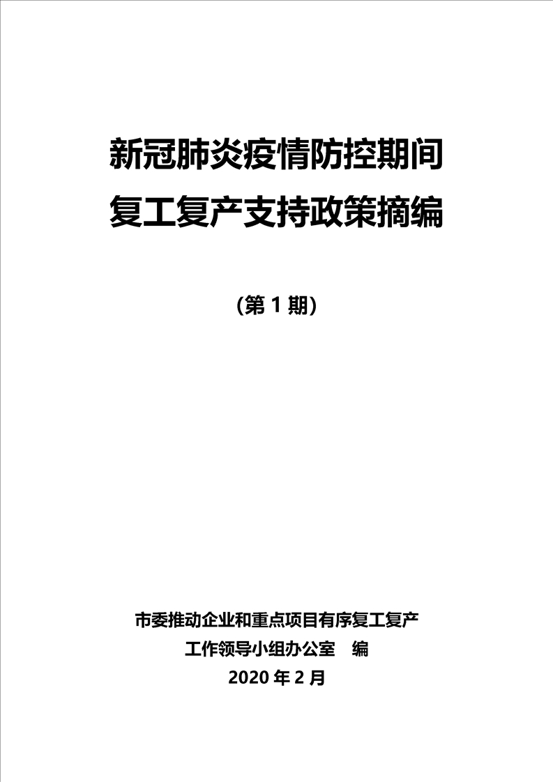 新冠肺炎疫情防控期間復(fù)工復(fù)產(chǎn)支持政策摘編(第1期)