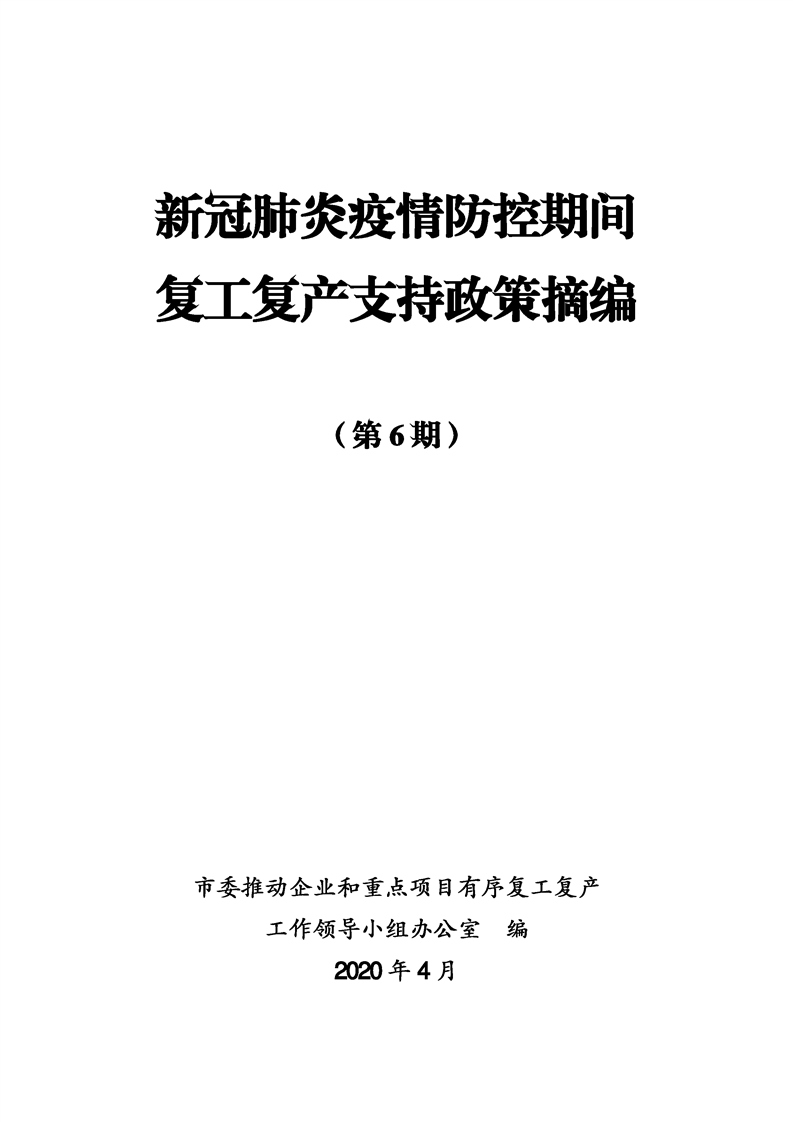 新冠肺炎疫情防控期間復工復產(chǎn)支持政策摘編(第6期)
