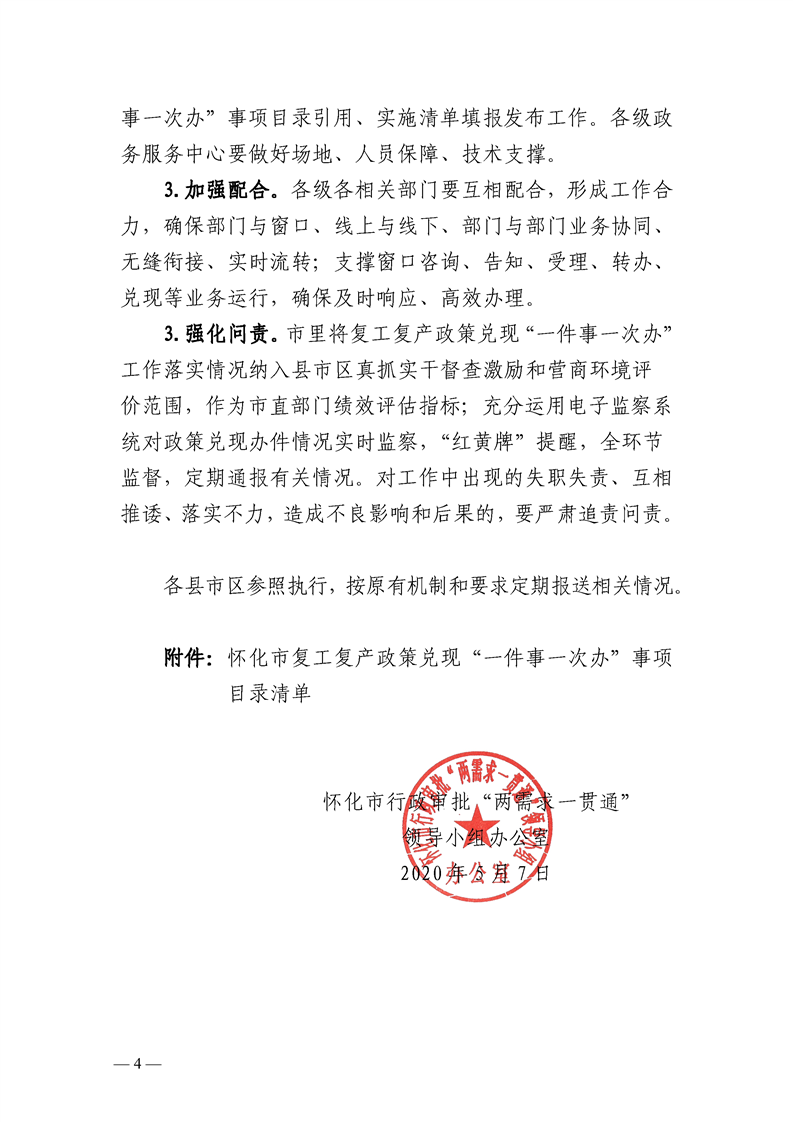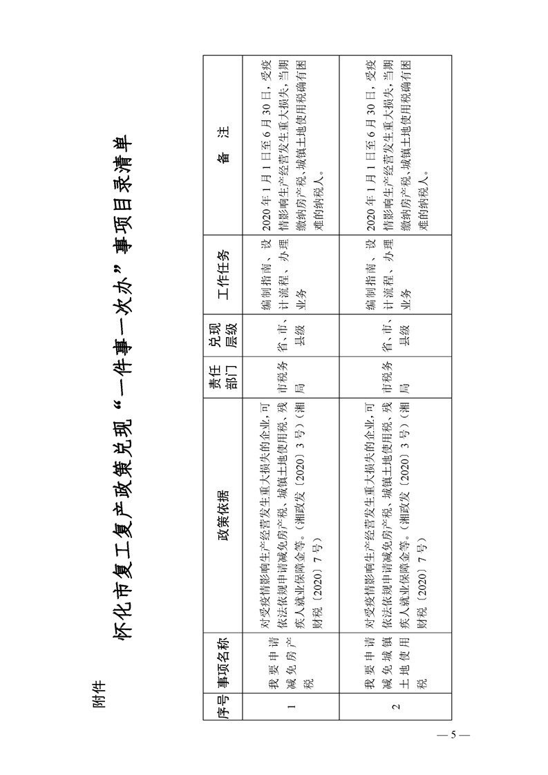 懷化市推進(jìn)復(fù)工復(fù)產(chǎn)政策兌現(xiàn)“一件事一次辦”工作實(shí)施方案