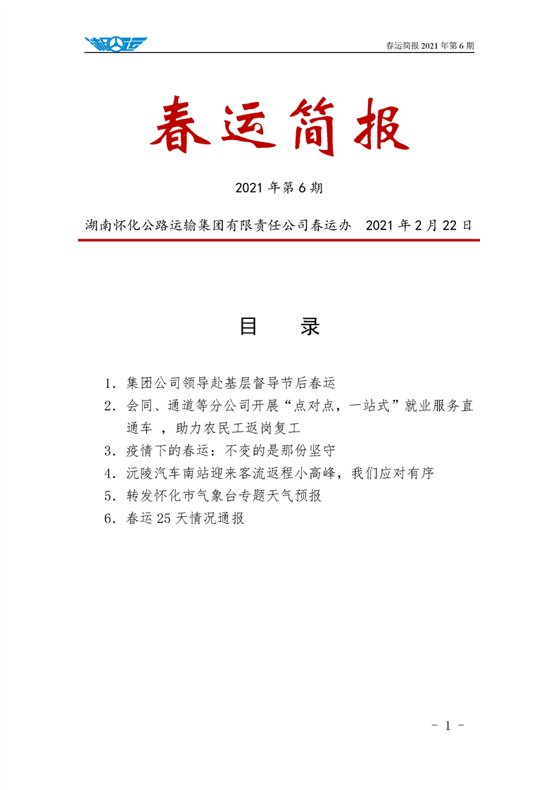 2021年懷運(yùn)集團(tuán)春運(yùn)簡報(bào)第六期
