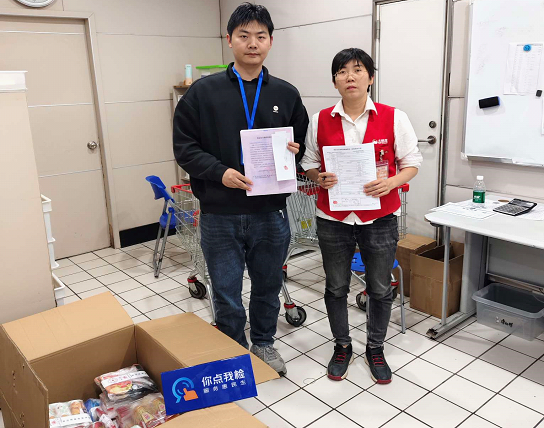 ▲工作人員進(jìn)超市抽樣