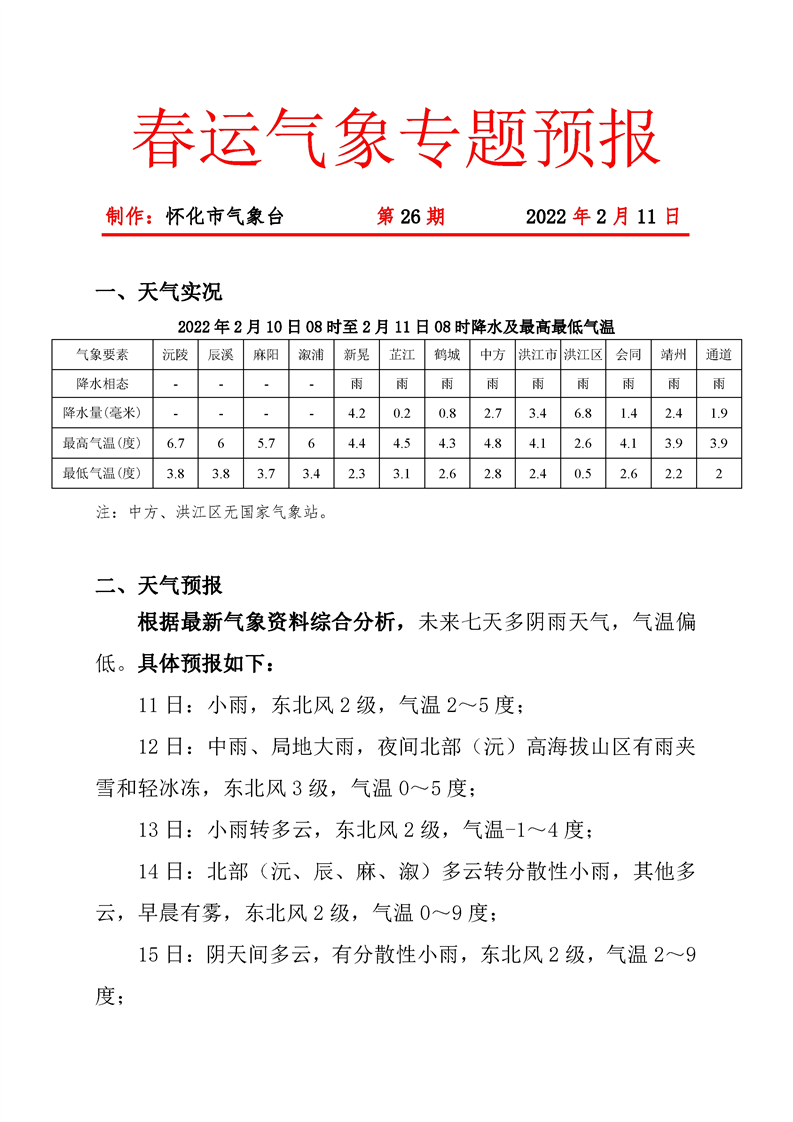 春運(yùn)氣象專題預(yù)報 第26期