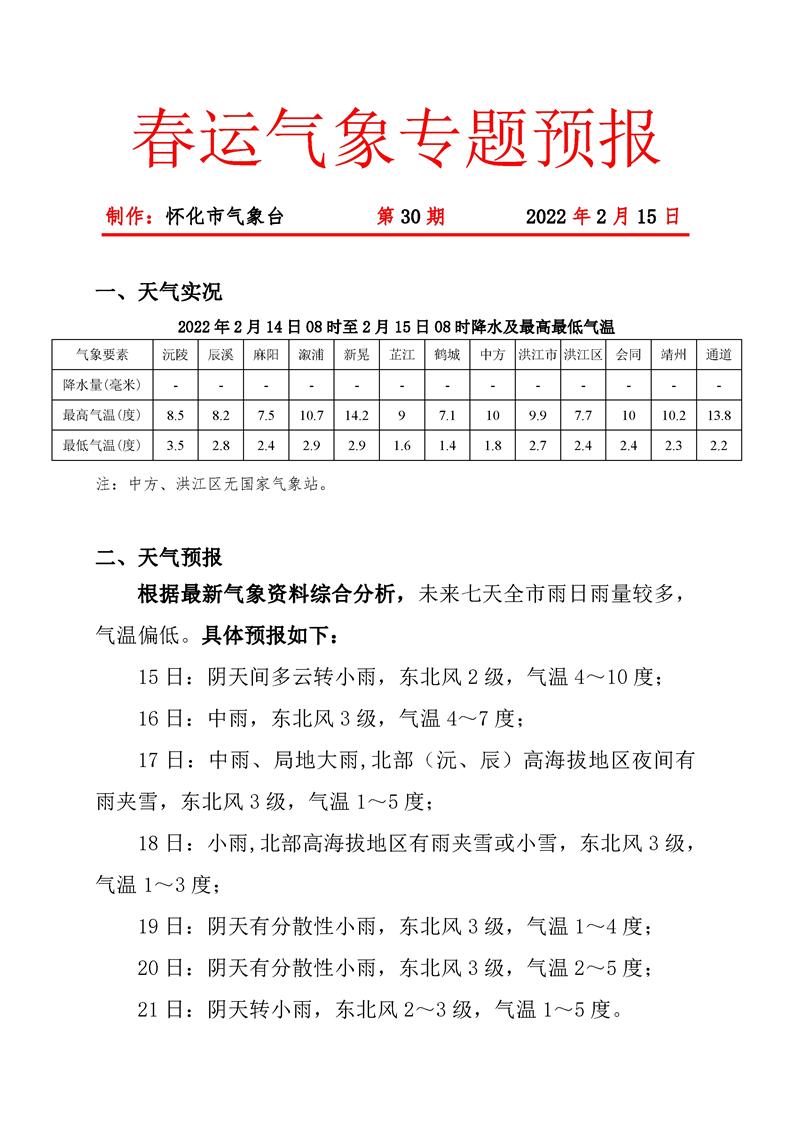 春運(yùn)氣象專題預(yù)報 第30期