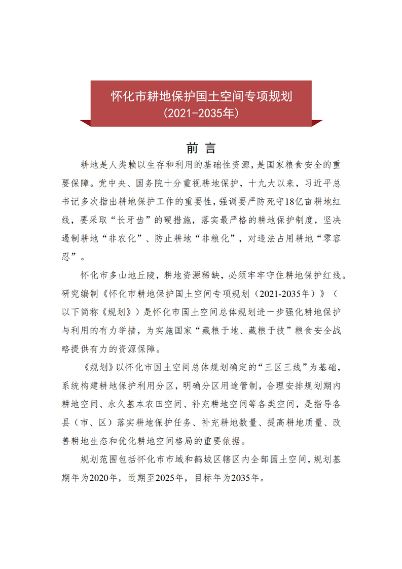 懷化市耕地保護(hù)國(guó)土空間專(zhuān)項(xiàng)規(guī)劃(2021-2035年)