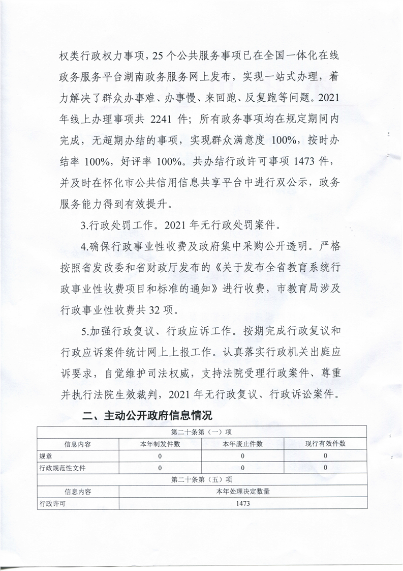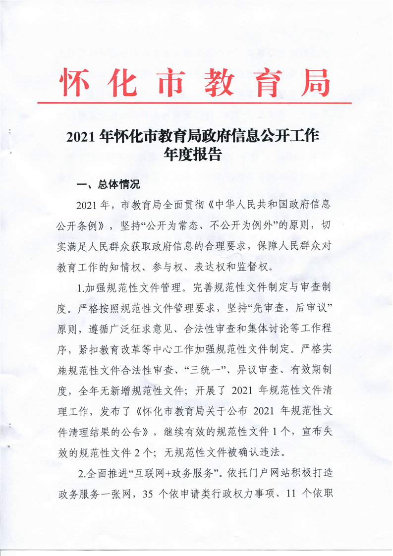 2021年懷化市教育局政府信息公開工作年度報告