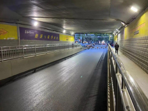 懷北路鐵路涵洞是城北區(qū)域進出城區(qū)的重要通道,此前涵洞建設(shè)時未配套安裝排水設(shè)施,加之鐵路涵洞頂部漏水,涵洞內(nèi)積水無法及時排除,瀝青路面長期受到雨水侵蝕,瀝青路面出現(xiàn)破損、擁包、跑砂等病害,尤其是幾處路面破損面積較大,兩側(cè)車道整體縱向出現(xiàn)車轍坑槽、坑洞,嚴(yán)重影響行車安全。此次修復(fù)施工后,路基路面坑槽、破損均已修復(fù),且已在涵洞兩側(cè)設(shè)計坡度以便涵洞內(nèi)車行道內(nèi)雨水排出。