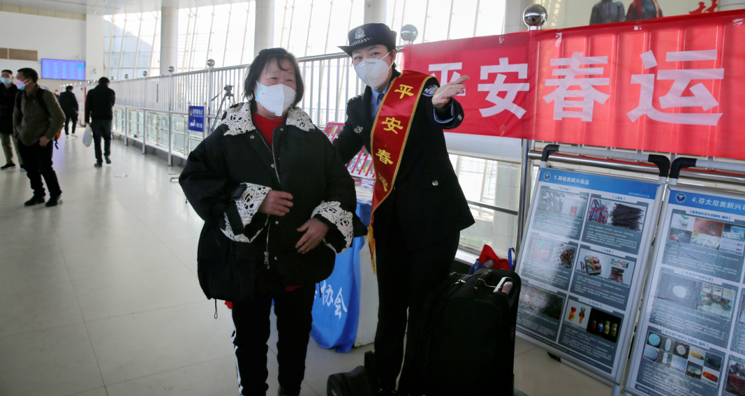 只見民警與客運(yùn)工作人員、志愿者們站在服務(wù)臺(tái)前,面帶微笑地迎接前來候車的旅客,熱情的為他們指方向和提供旅途安全咨詢,并特別將交通運(yùn)輸部公布實(shí)施的《鐵路旅客運(yùn)輸規(guī)程》關(guān)于兒童、學(xué)生、殘疾軍人(民警)乘車的新規(guī)定,以及車票改簽、退票環(huán)節(jié)和旅客車票實(shí)名制管理等相關(guān)知識(shí)進(jìn)行了宣傳。