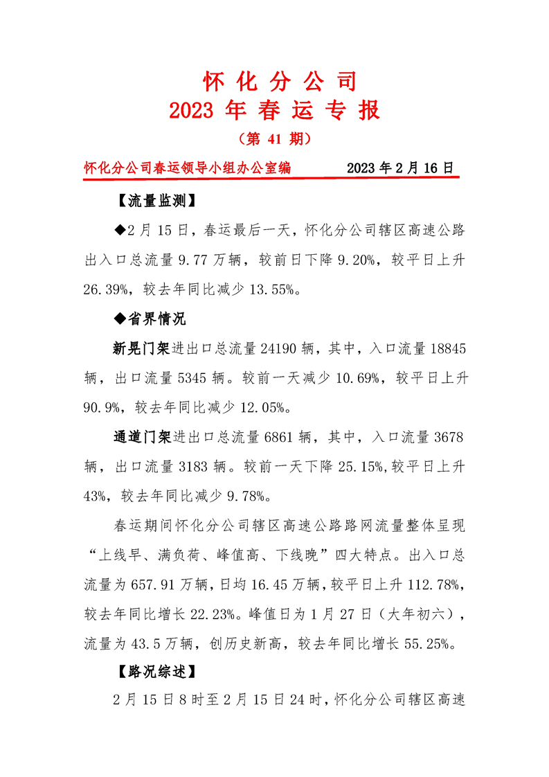 2023年懷化分公司春運(yùn)專報(bào)-第41期