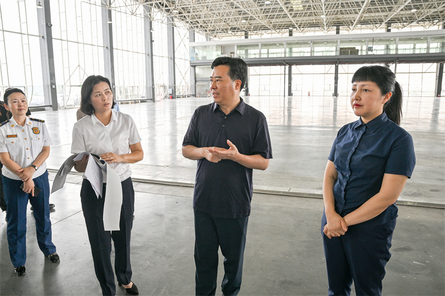在懷化國際會展中心,黎春秋詳細了解項目掃尾工程建設進度,指出部分需要改進的細節(jié),確定有關具體事項。他強調,我市承辦第十一屆全球湘商大會進入一個月倒計時,必須緊盯時間節(jié)點,倒排工期進度,在確保安全和質量的前提下,全力以赴加快項目建設,確保按時保質建成投入使用。