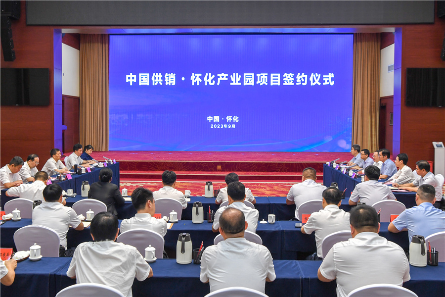 9月12日下午,市政府與中國(guó)供銷集團(tuán)簽署合作協(xié)議。(懷化日?qǐng)?bào)全媒體記者 楊智偉 攝)