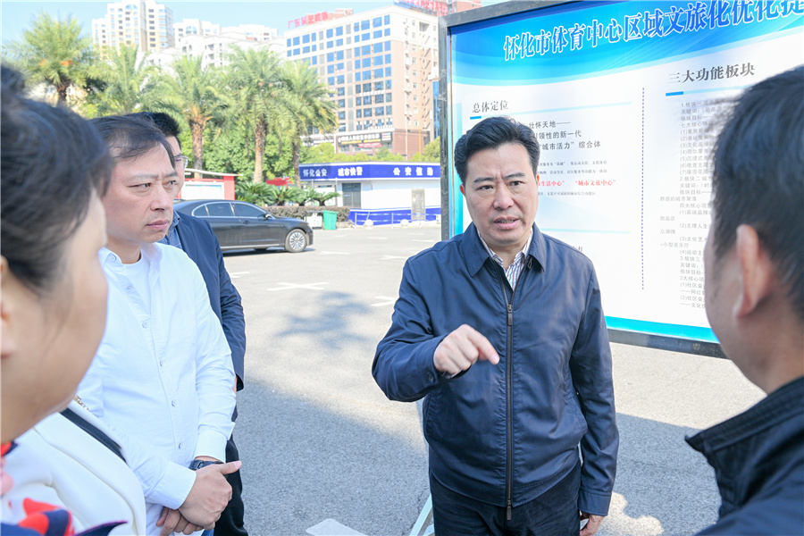 (10月22日上午,市委副書記、市長(zhǎng)黎春秋調(diào)研主城區(qū)城市承載商圈工作。懷化日?qǐng)?bào)全媒體記者 潘雨 攝)