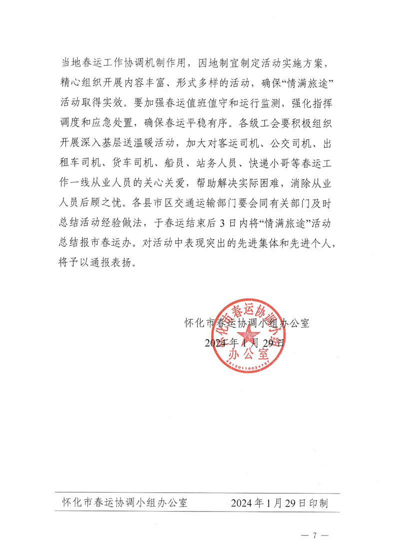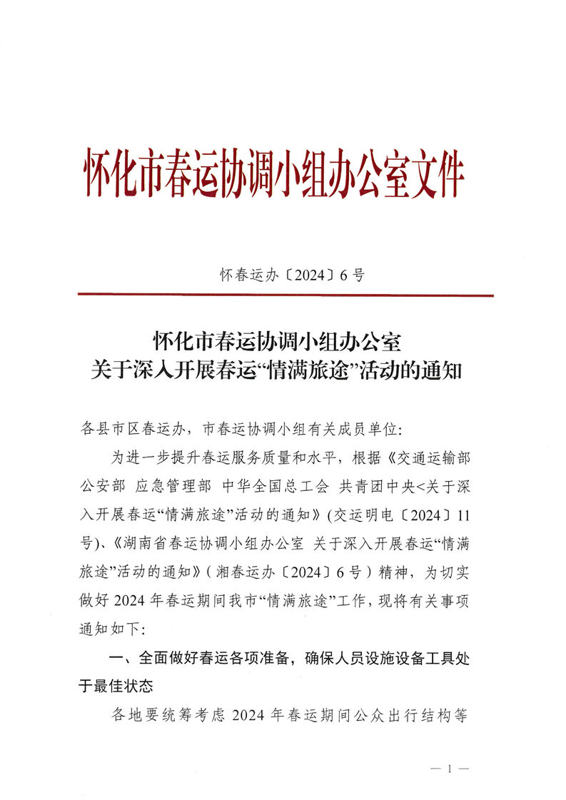 懷化市春運(yùn)協(xié)調(diào)小組辦公室關(guān)于深入開展春運(yùn)“情滿旅途”活動的通知