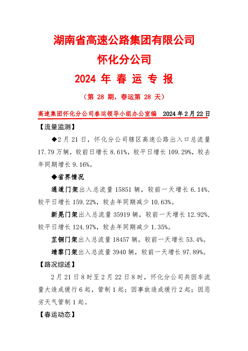 2024年懷化分公司春運(yùn)專報(bào)-第28期