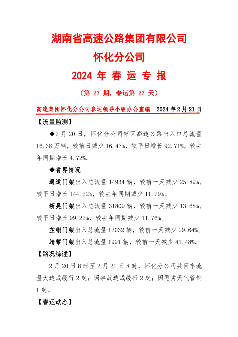 2024年懷化分公司春運(yùn)專(zhuān)報(bào)-第27期