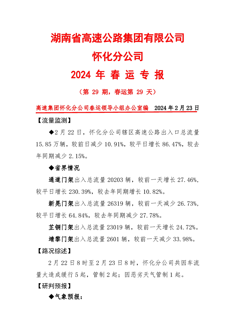 2024年懷化分公司春運(yùn)專報(bào)-第29期