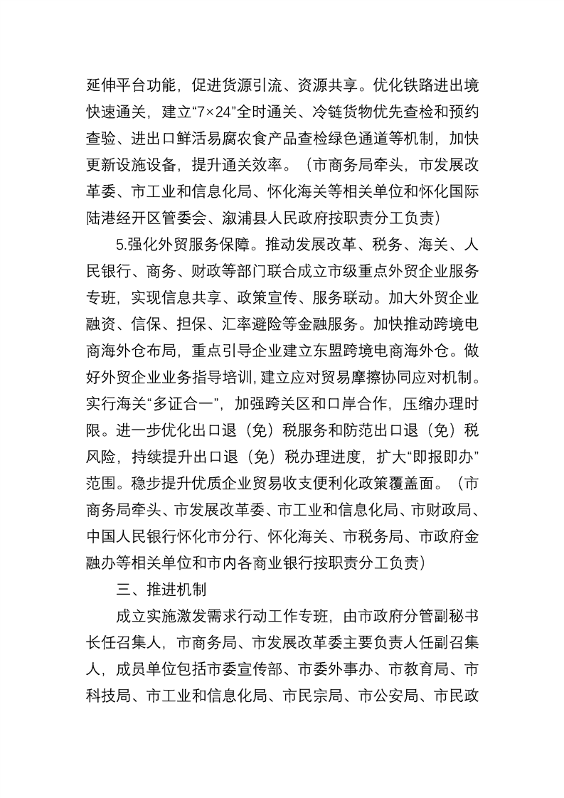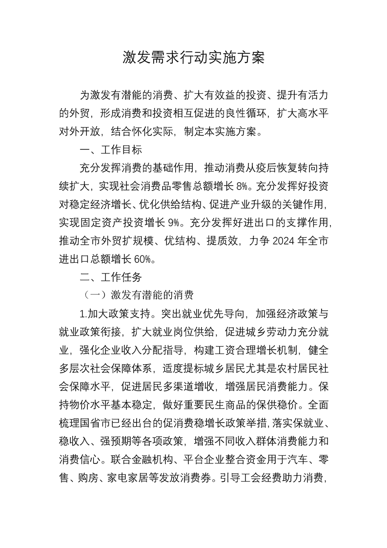 [政策]激發(fā)需求行動實施方案