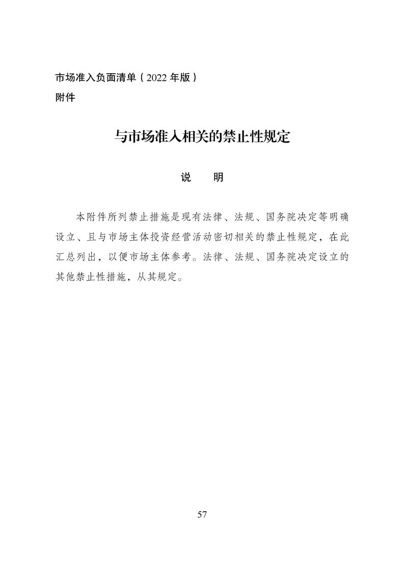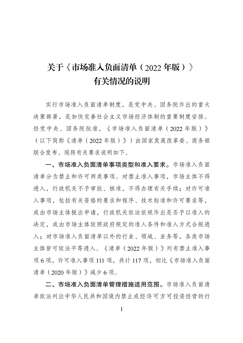 市場(chǎng)準(zhǔn)入負(fù)面清單2022年版