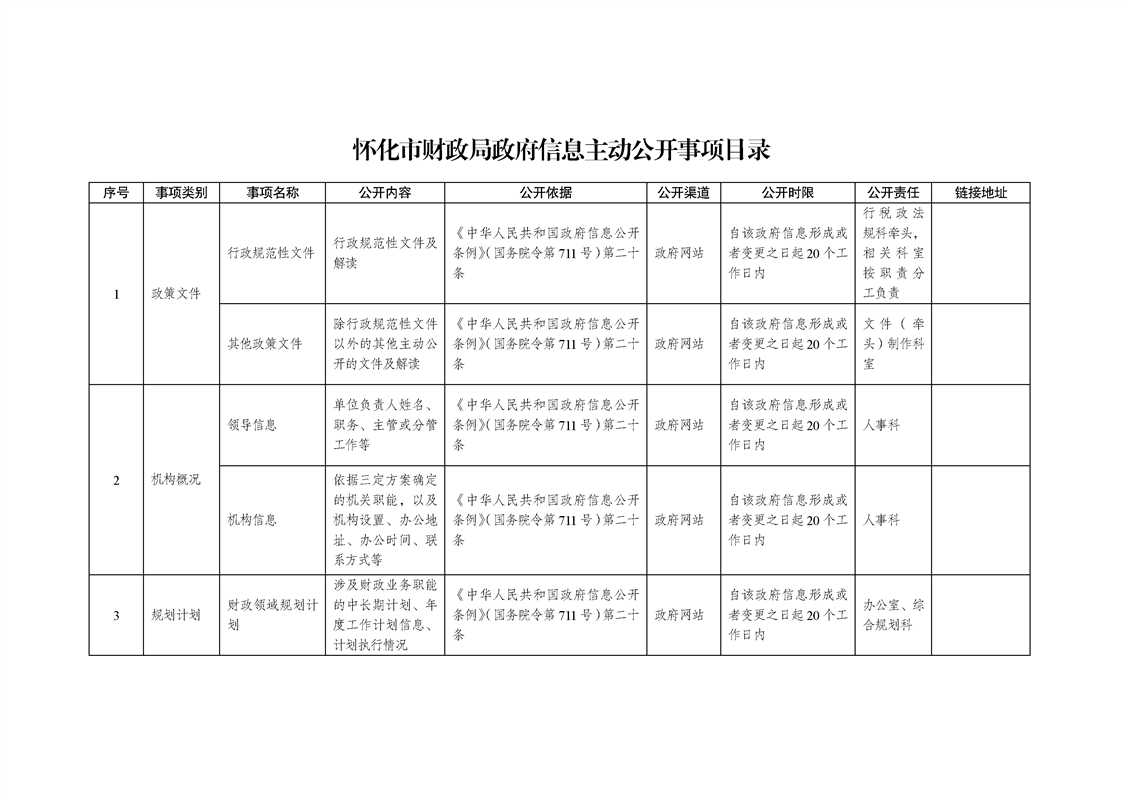 懷化市財(cái)政局政府信息主動(dòng)公開事項(xiàng)目錄