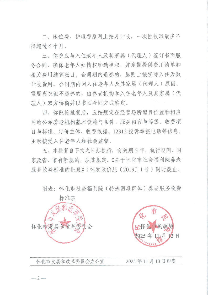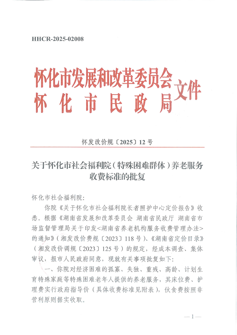 關(guān)于懷化市社會福利院(特殊困難群體)養(yǎng)老服務(wù)收費標(biāo)準(zhǔn)的批復(fù)
