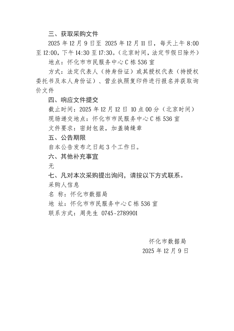 懷化市政務云服務采購項目及懷化市政務云綜合服務采購項目咨詢服務詢價公告