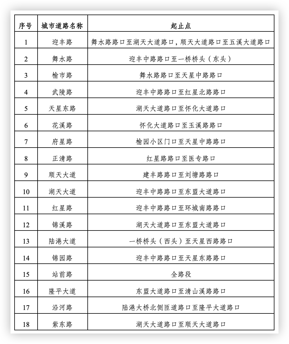 根據(jù)懷化城區(qū)機動車違法停車管理工作實際情況,現(xiàn)將天星西路、鐵北南路機動車違法停車行為嚴格管理路段調整為非嚴格管理路段,增設隆平大道、沿河路、紫東路為機動車違法停車行為嚴格管理路段,迎豐路、順天大道部分路段做優(yōu)化調整。城區(qū)調整后的嚴格管理路段如下: